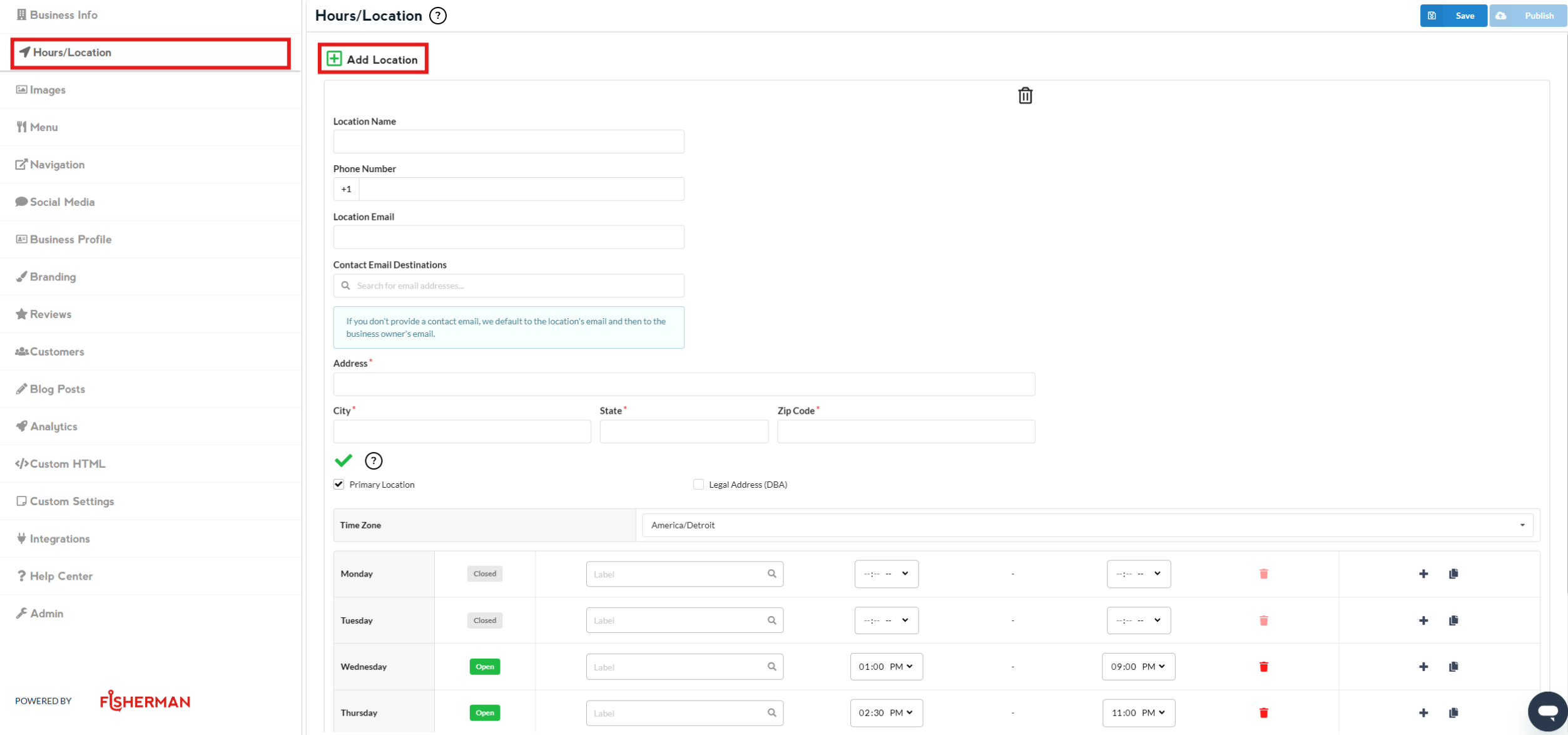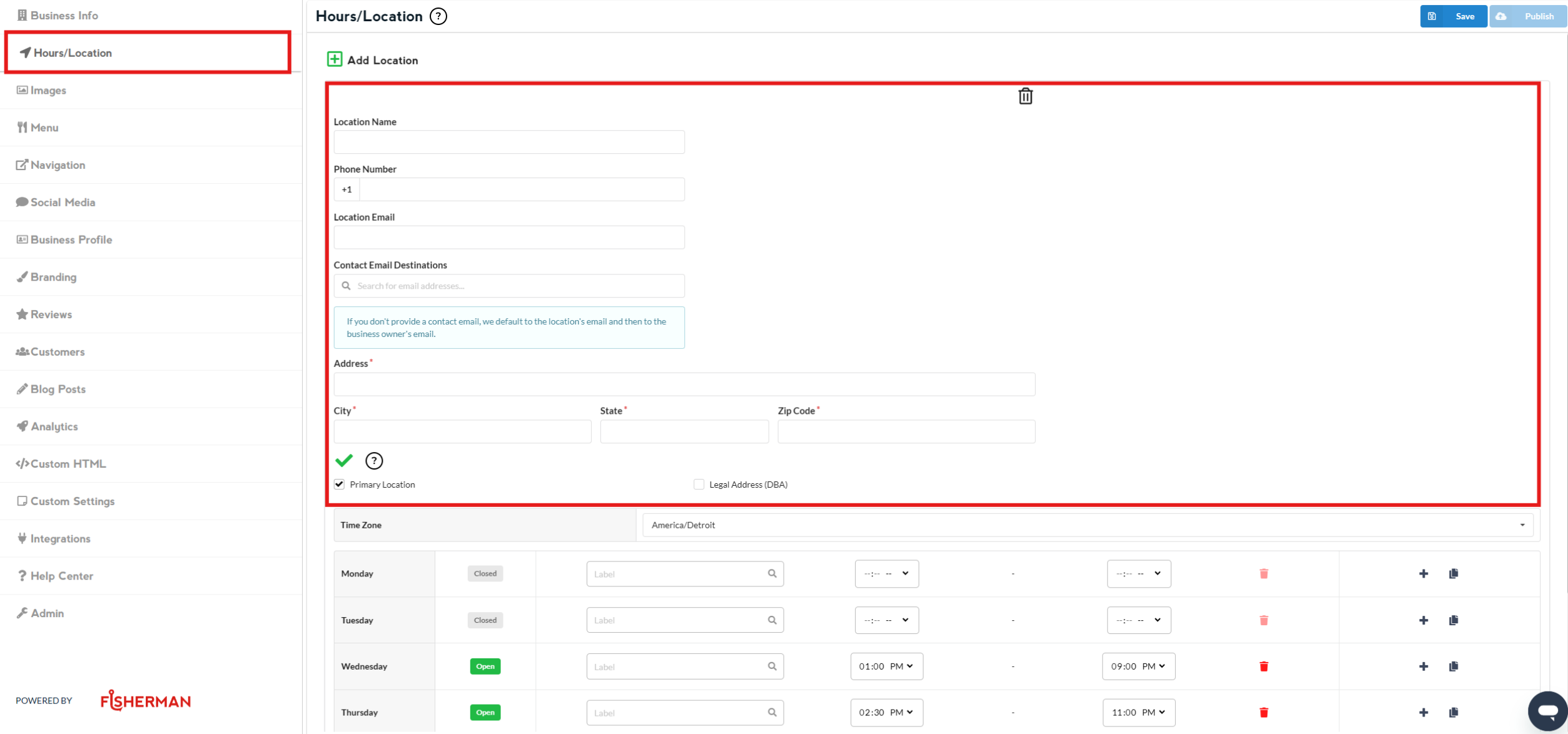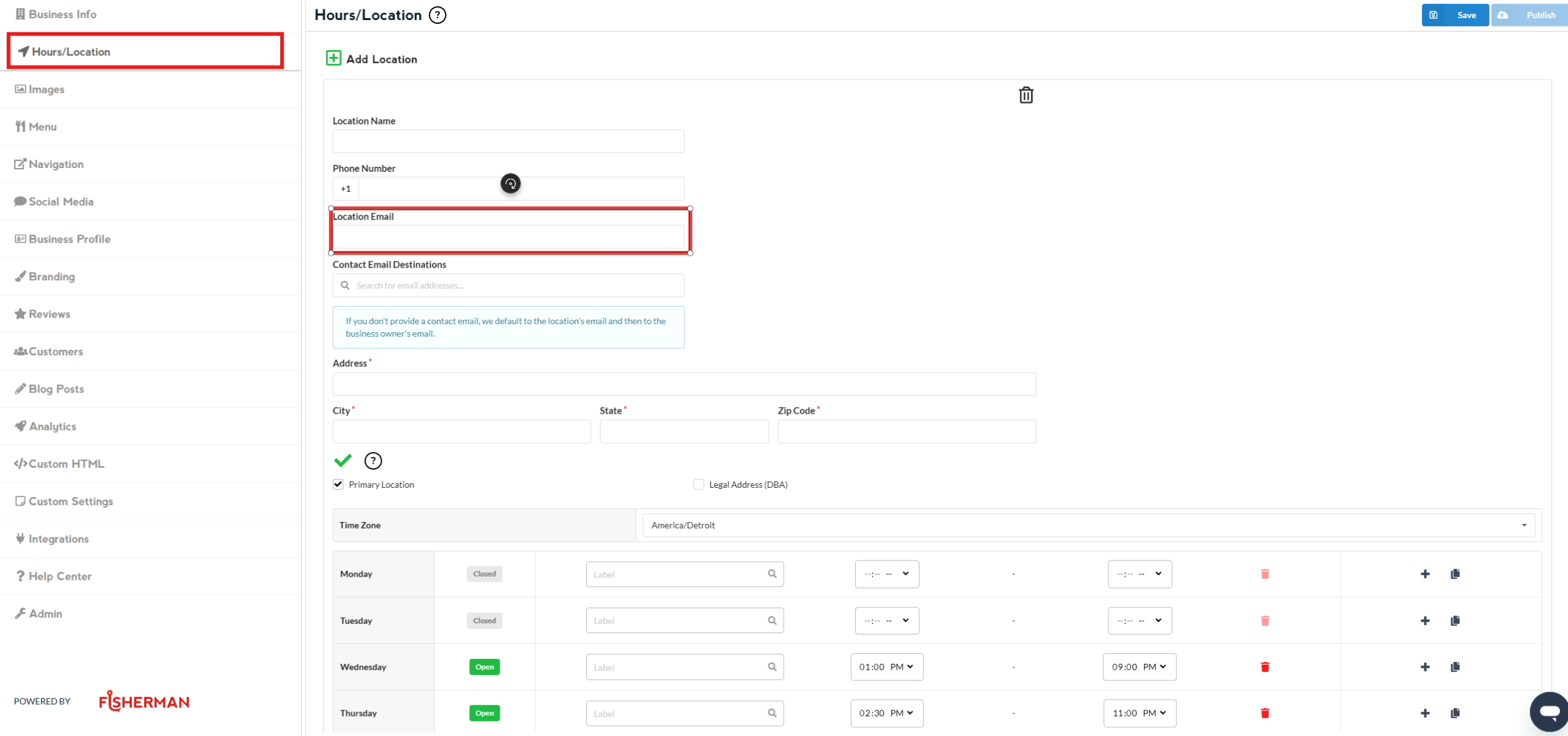 Go to “Hours/Location” section (left side of the dashboard), and there you’ll see a section where you can edit your “Address”