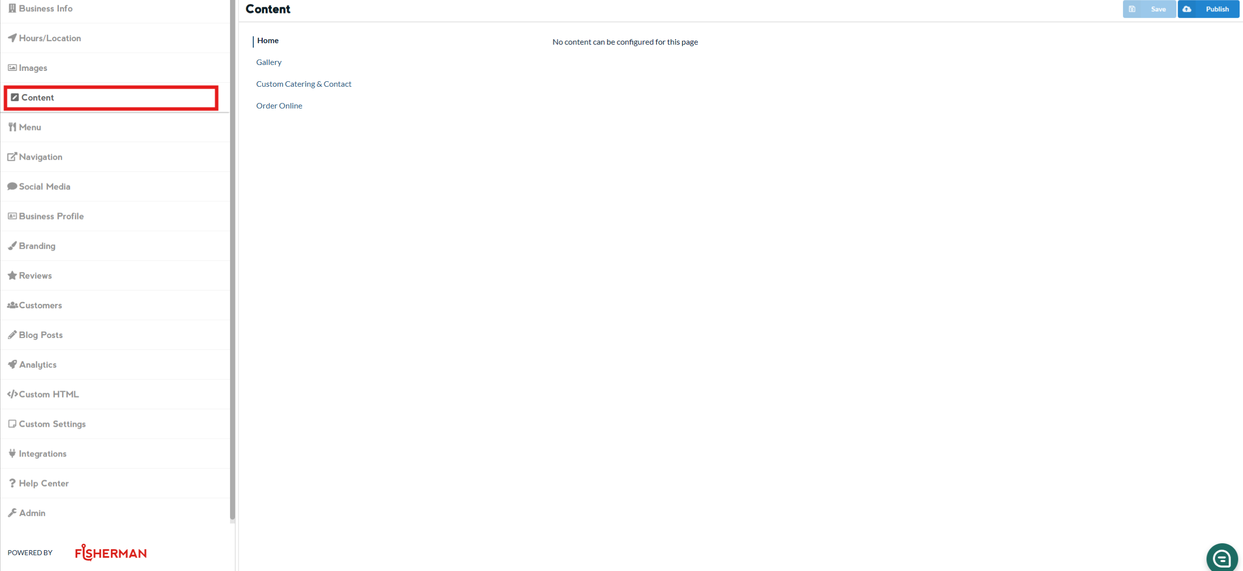 Click on the “Content” page from the list.