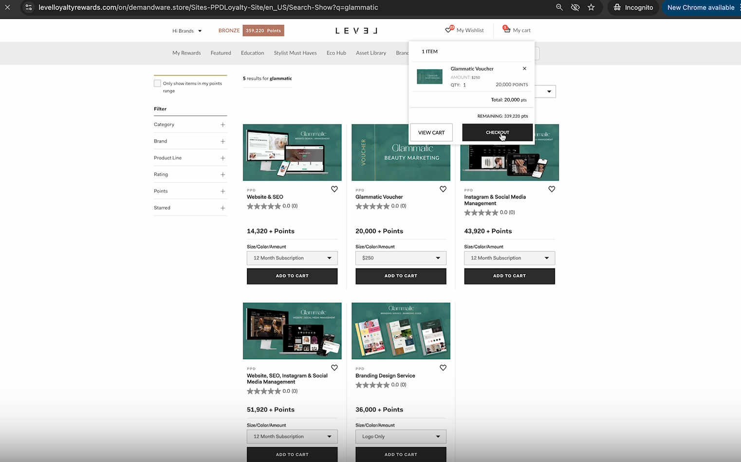 3. Once you're on this page, select the voucher you want to redeem. In this case, choose 'Glammatic Voucher.'