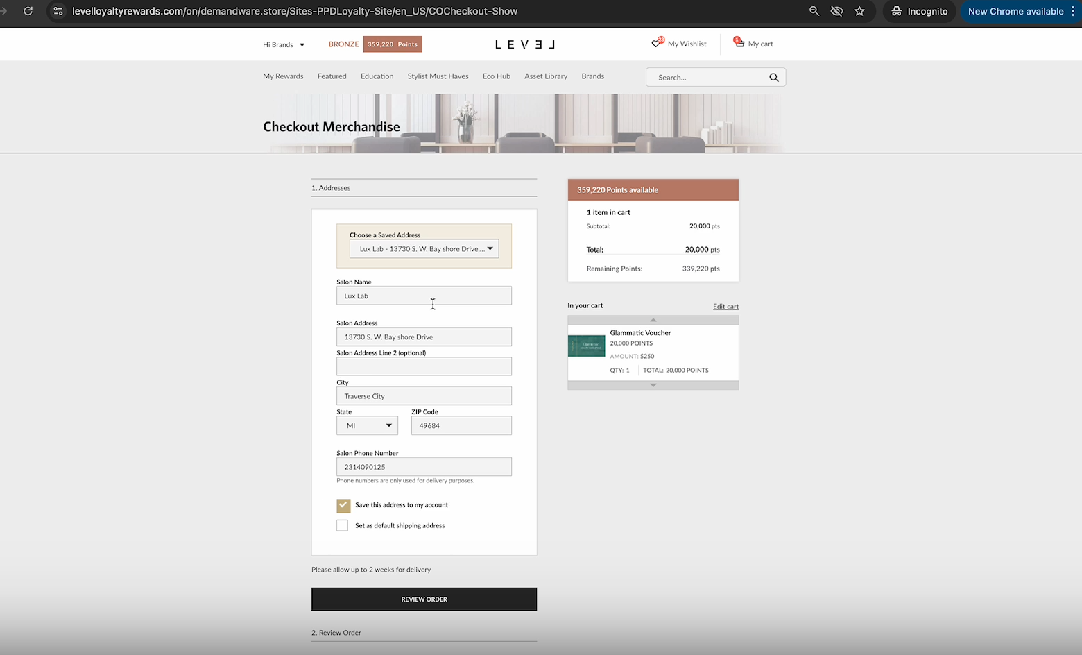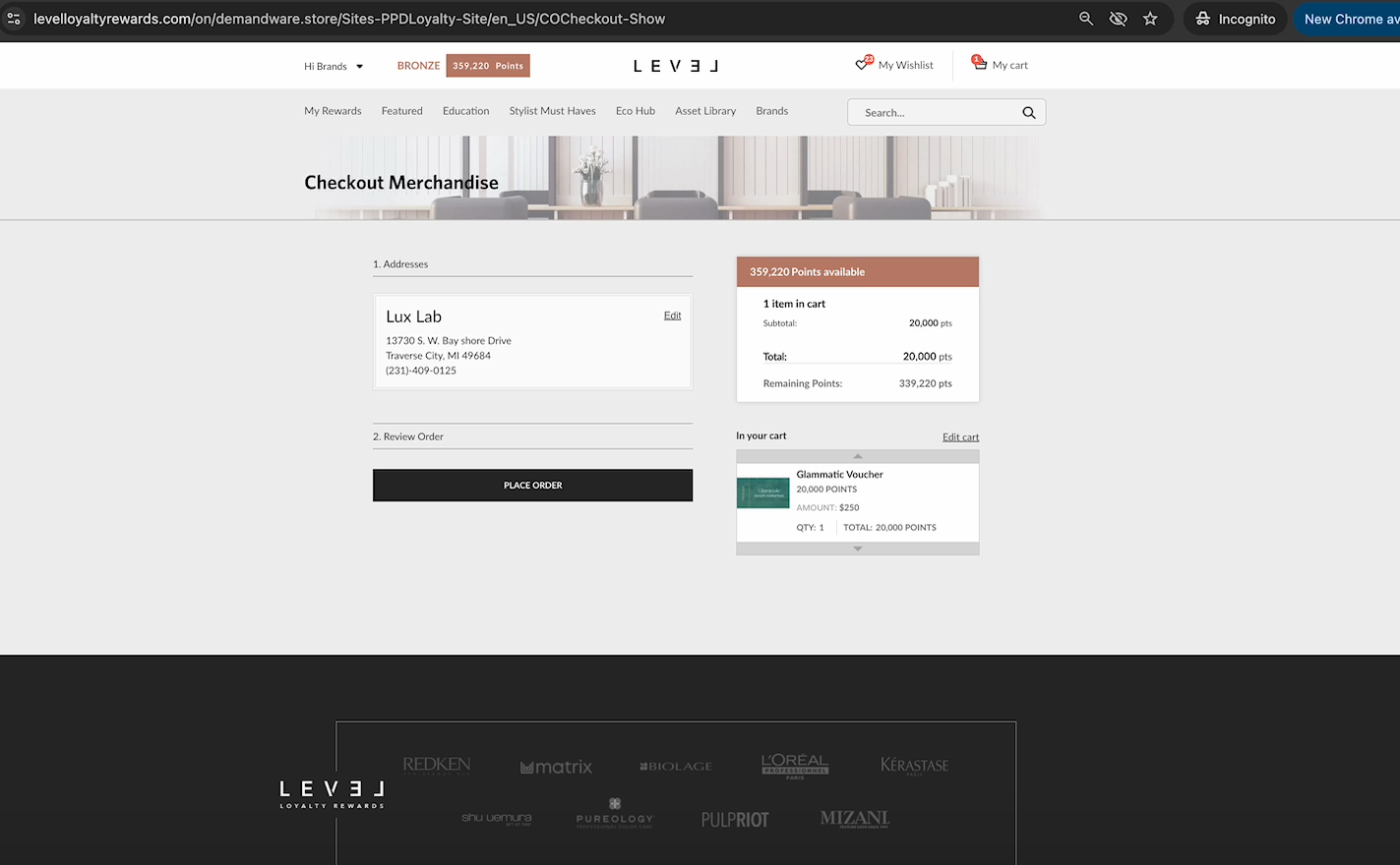 1. Go to levelloyaltyrewards.com and sign in using your username and password.