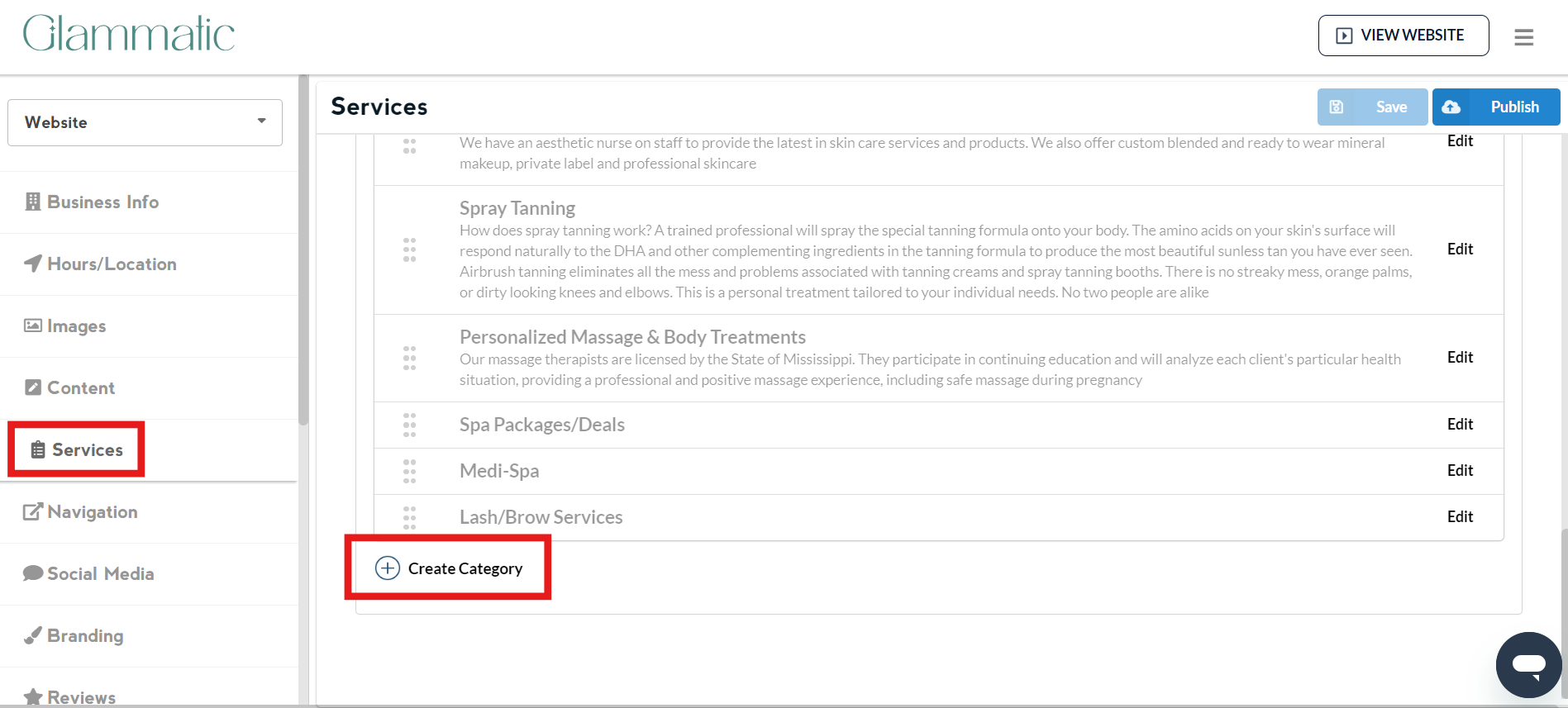 In the pop-up window, add the Category Name (e.g., “Hair Services”, “Nail Services”) and Description (e.g., “All haircuts include a complimentary wash and style”).