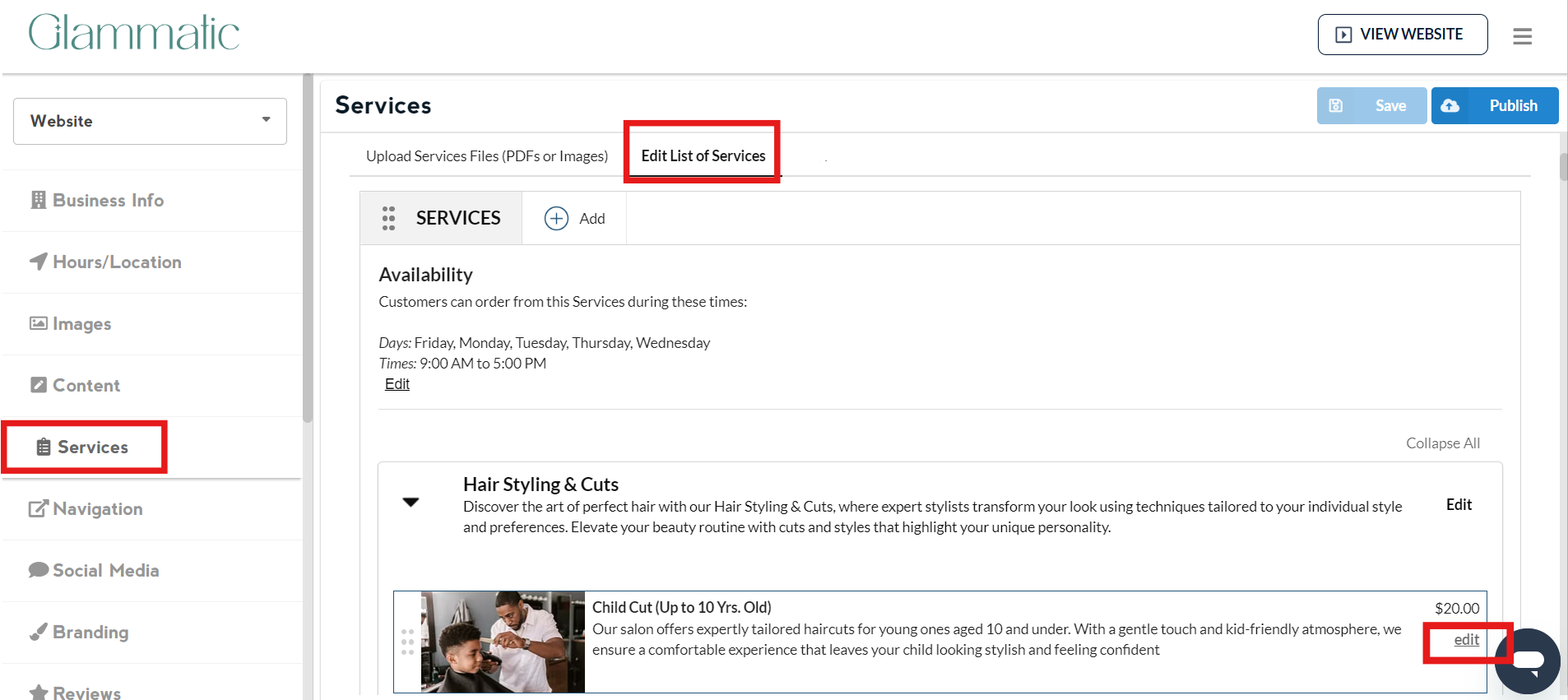 Scroll to the service you’d like to change and click edit on the right side under the price.