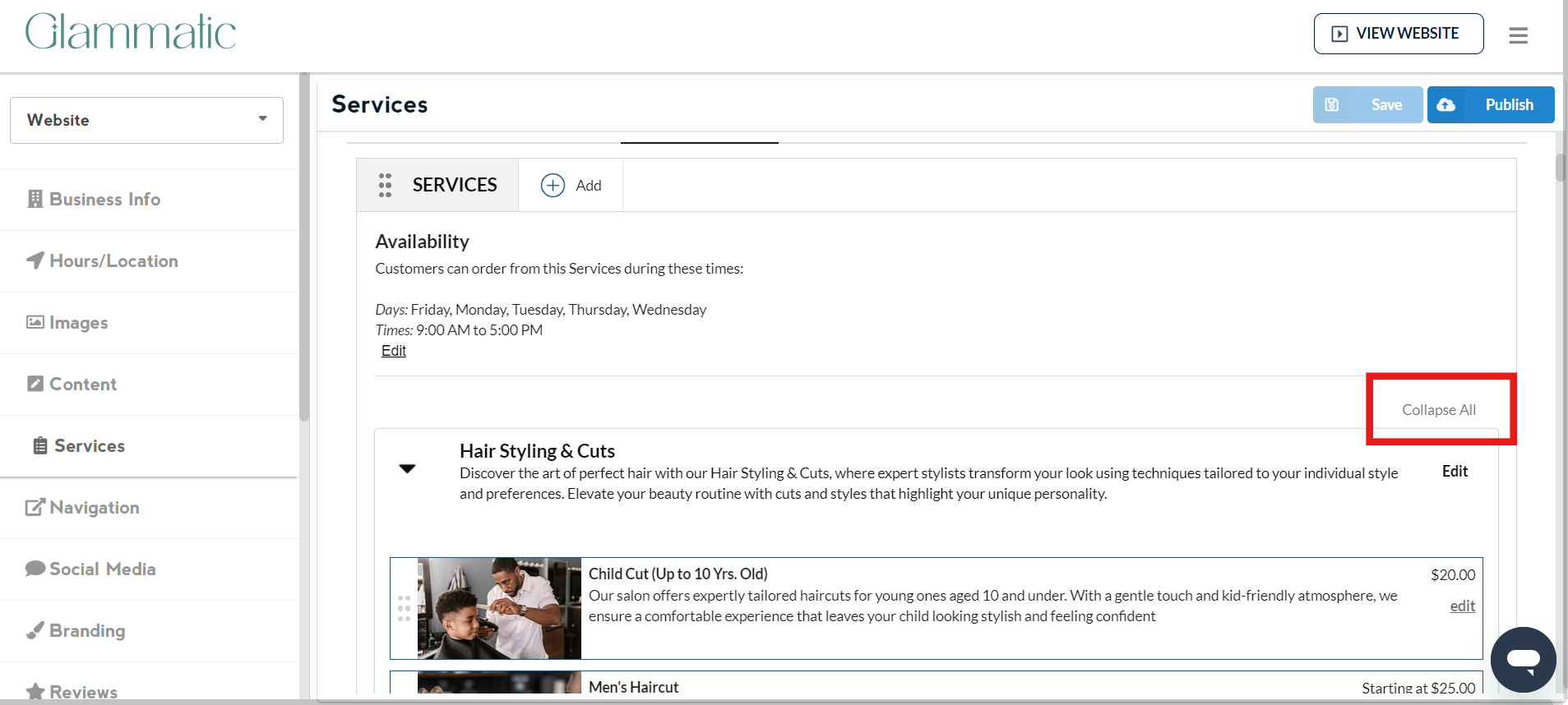 Once you have organized the categories into a preferred order, you can expand the list again by clicking on expand all in the top left corner of the digitized services list (where “collapse all” was before).