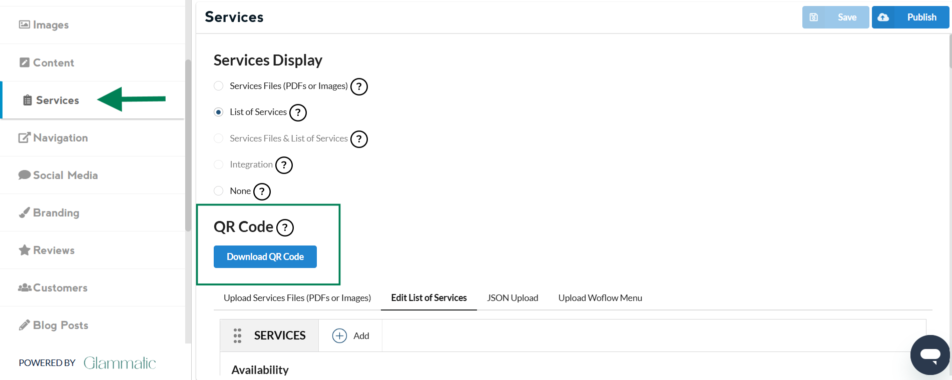 Creating a QR code for your Services/Menu makes it easy for clients to access your offerings quickly and conveniently. Follow the steps below to download a QR code directly from your Glammatic dashboard.